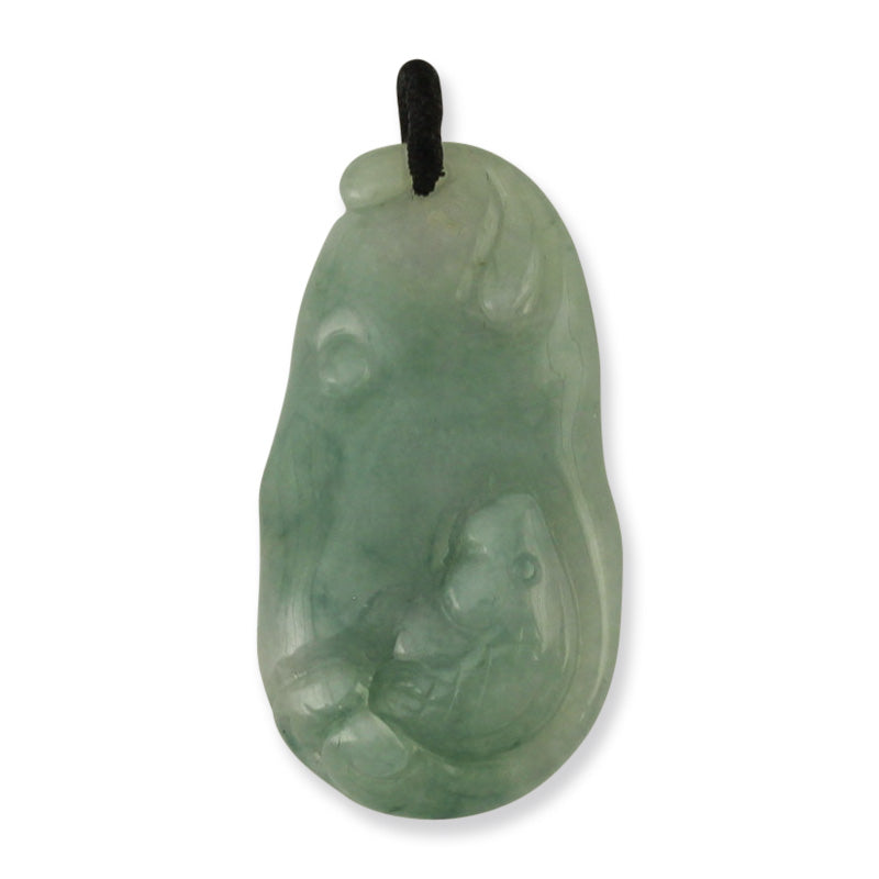 Small Green Jadeite Jade Fish Pendant | Jade Carving of Fish in Pond | UPC #390256