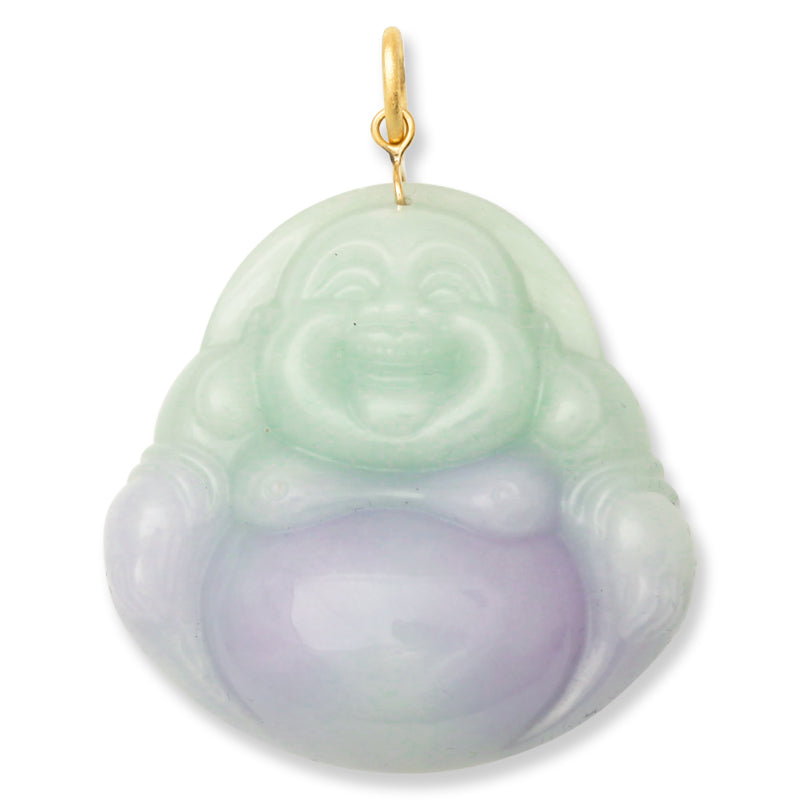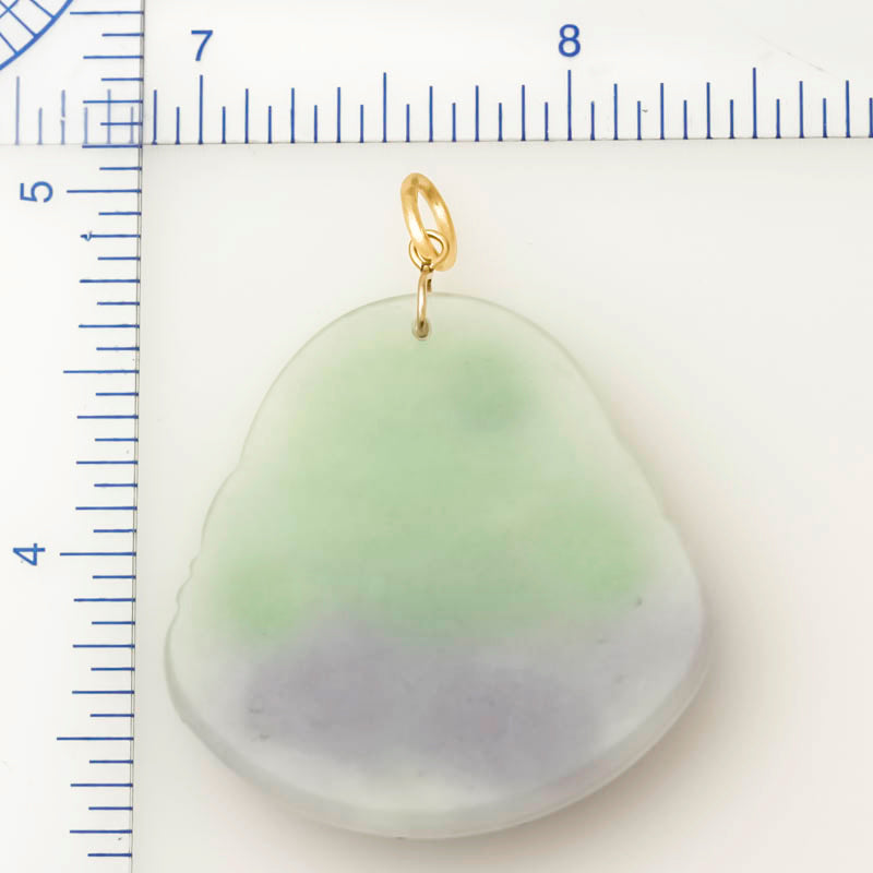GREEN & LAVENDER JADEITE JADE 18K YELLOW GOLD CARVED BUDDHA PENDANT UPC #397101