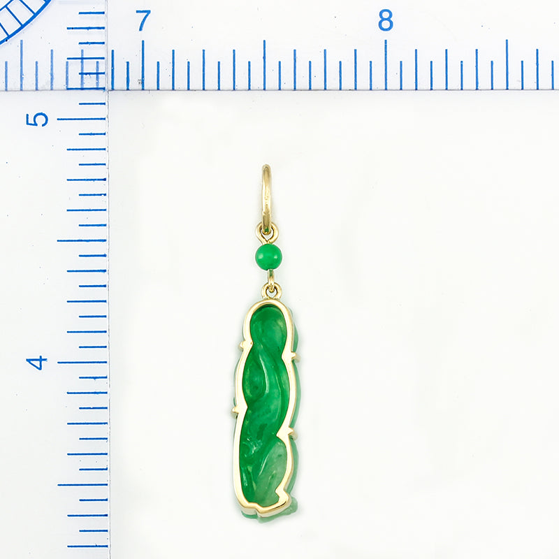 Green Jadeite Jade Carved 14K Yellow Gold Pendant | UPC #394407