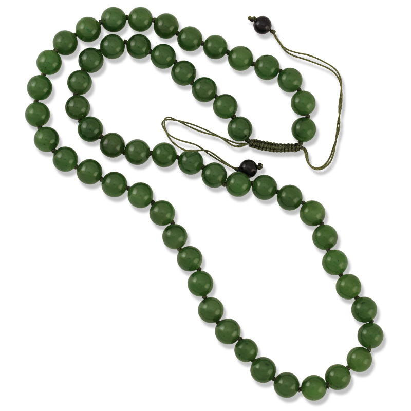 Green Nephrite Jade Adjustable Bead Necklace for Men and Women | UPC #394766