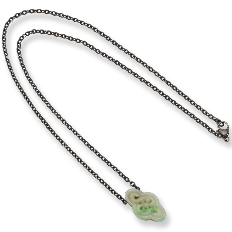 Green Jadeite Jade Carved Freeform Slide on 18” Steel Chain Necklace | UPC #393028