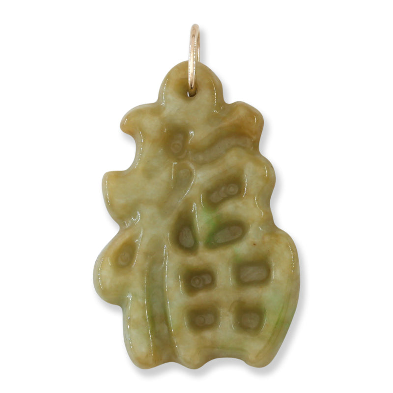 14K Yellow Gold Yellow Jadeite Jade Carved Good Fortune Pendant | UPC #395596