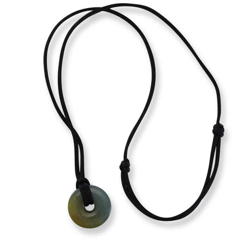 Blue Green Guatemalan Jadeite Jade Pi Disc Necklace | UPC #399518