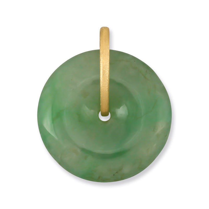 Green Jadeite Jade Disc Pendant In 18K Yellow Gold | UPC #379305