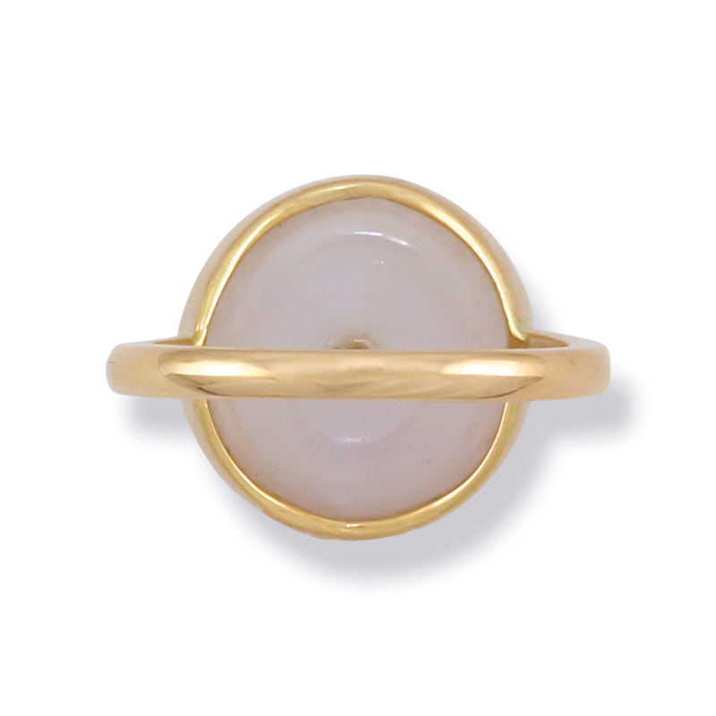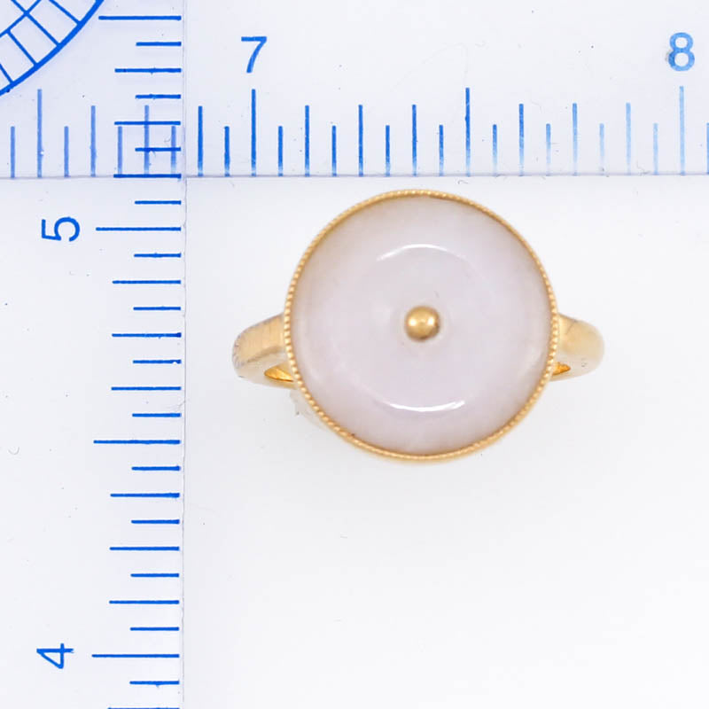 14K YELLOW GOLD WHITE JADEITE JADE DISC RING UPC #373761