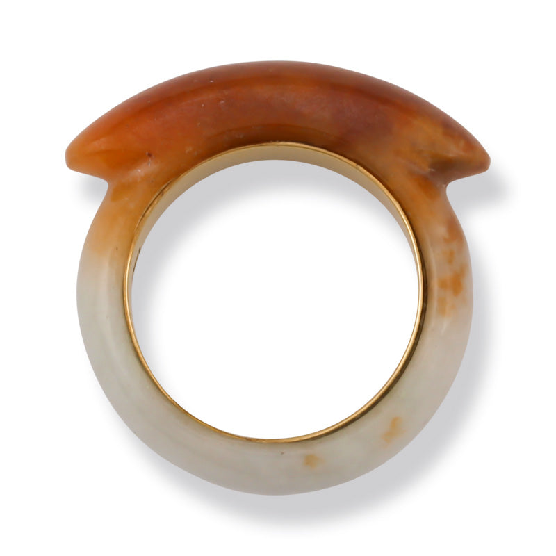 ESTATE 14K YELLOW GOLD RED JADEITE JADE CONTINUOUS BAND SADDLE RING UPC #130937