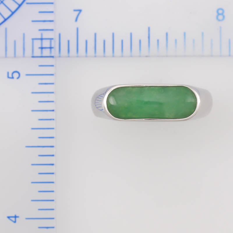 • 14K White Gold Green Jadeite Jade Saddle Ring for Women and Men | UPC #379114