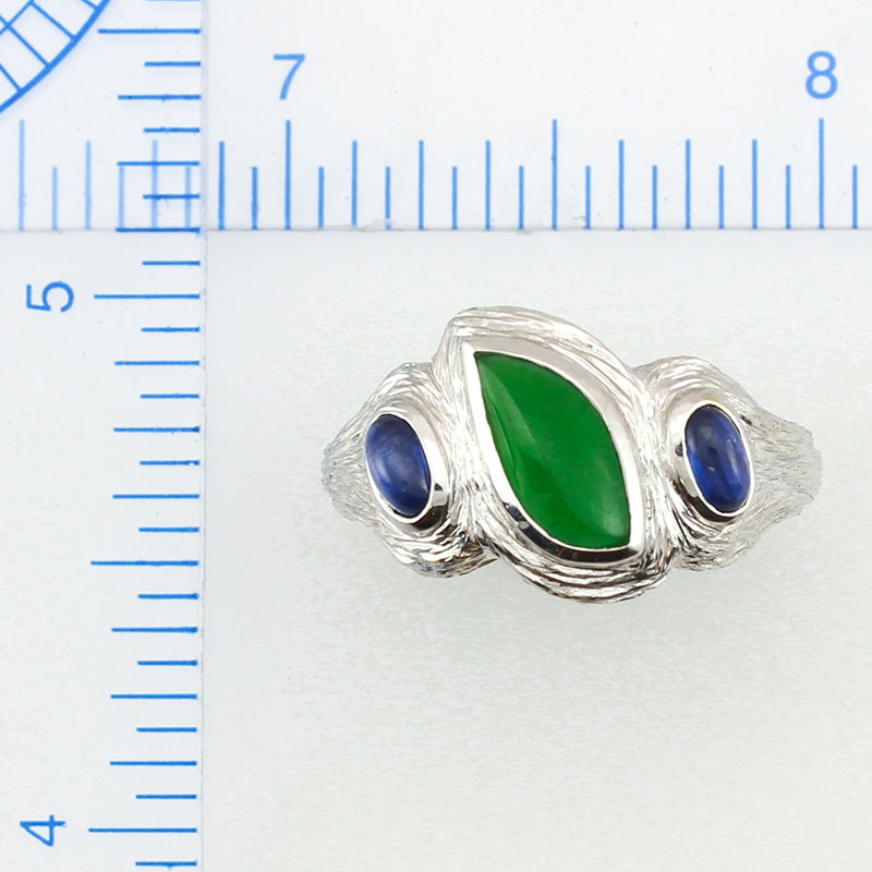 • 18K White Gold Green Jadeite Jade and Sapphire Designer Ring | UPC #275195