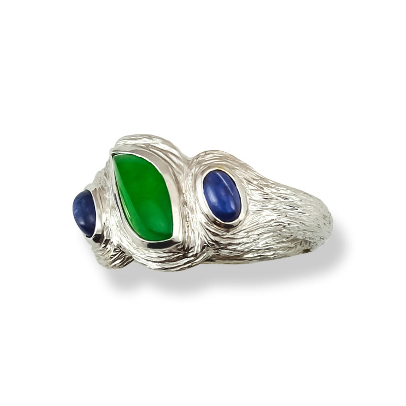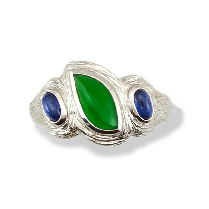 18K White Gold Green Jadeite Jade and Sapphire Designer Ring | UPC #275195