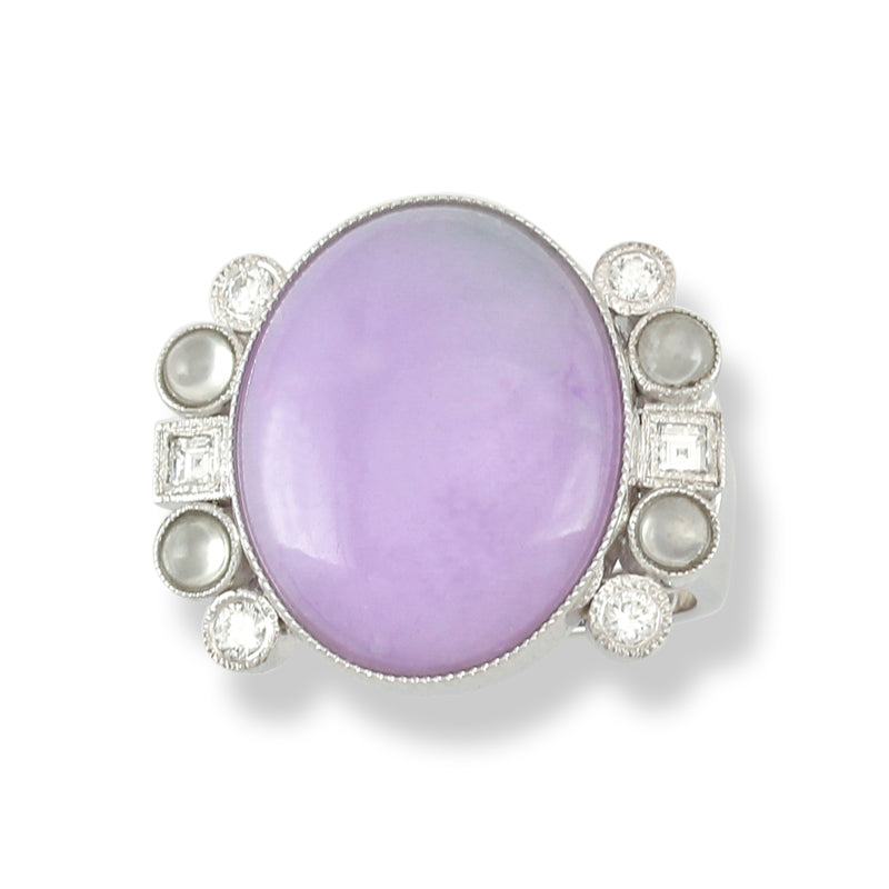 18K White Gold Lavender Jadeite Jade Cocktail Ring | UPC #341203