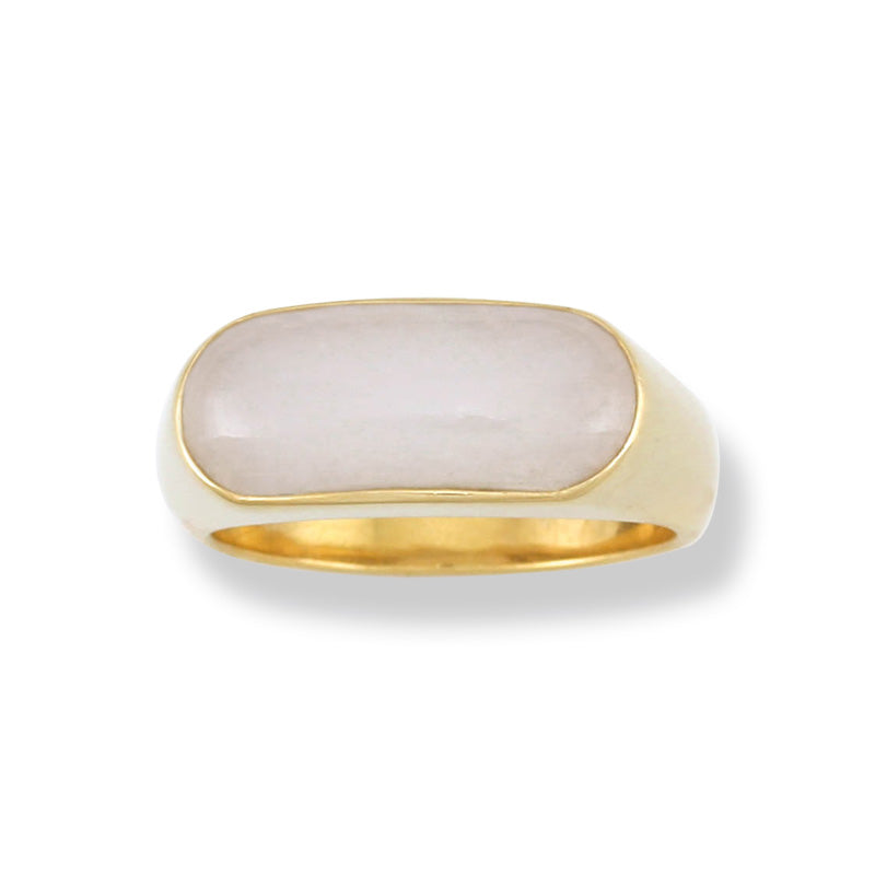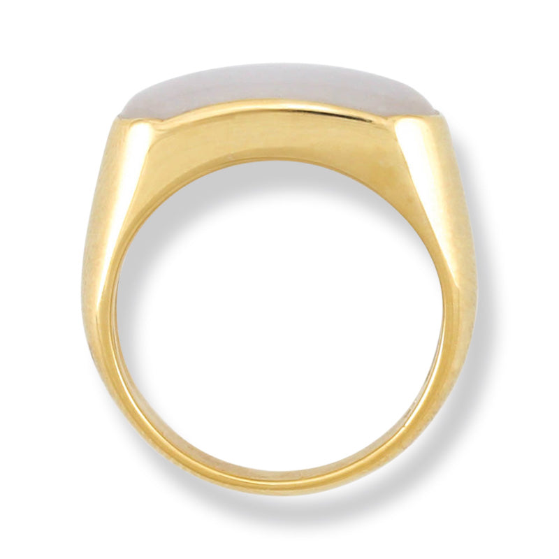 14K Yellow Gold White Jadeite Jade Disc Ring | UPC #373785