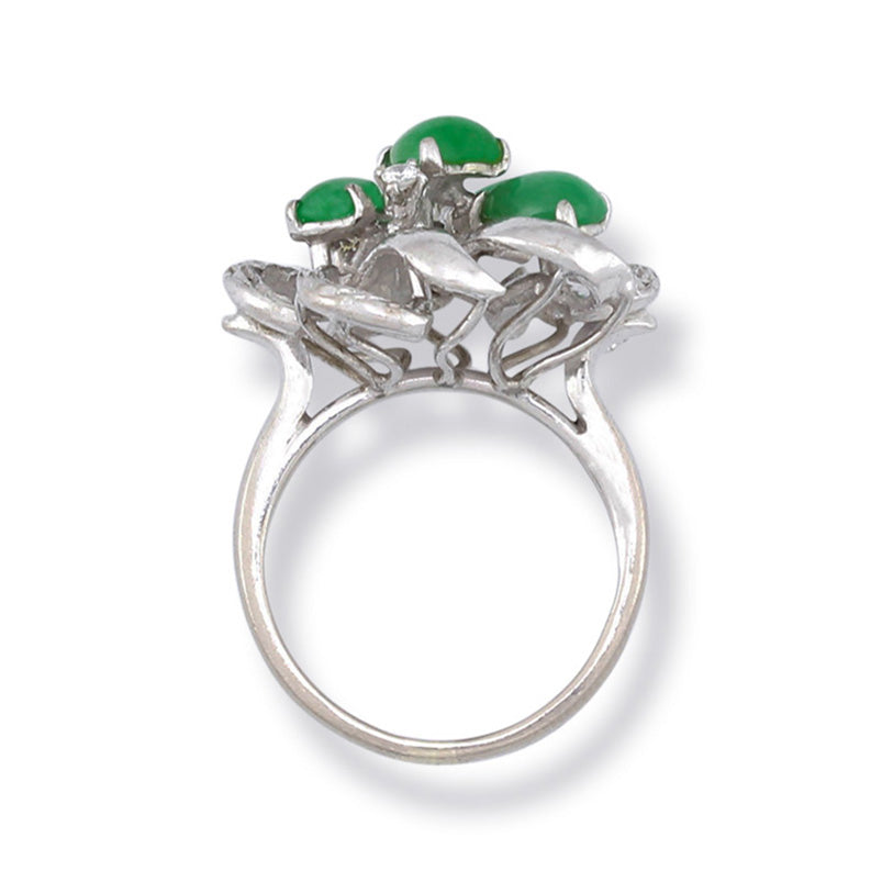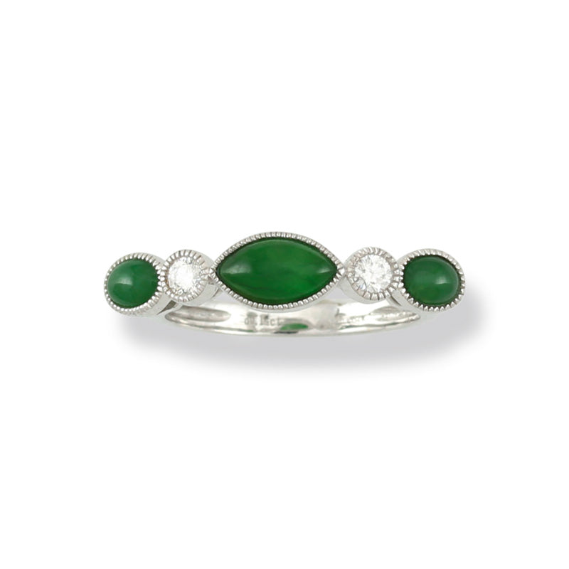 18K White Gold Green Jadeite Jade and Diamond Ring | UPC #367555
