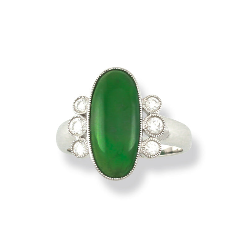 18K White Gold Green Jadeite Jade and Diamond Ring | UPC #272347
