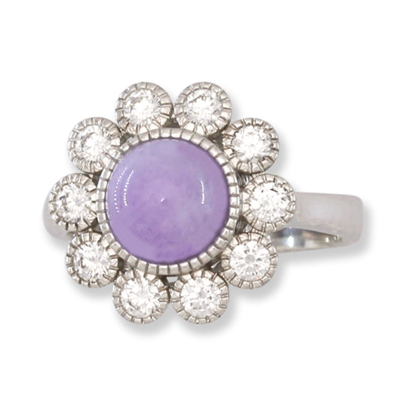 18K White Gold Lavender Jadeite Jade Diamond Ring | UPC #359383