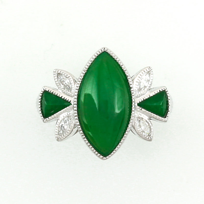 18K WHITE GOLD GREEN JADEITE AND DIAMOND MARQUISE JADE RING UPC #339071
