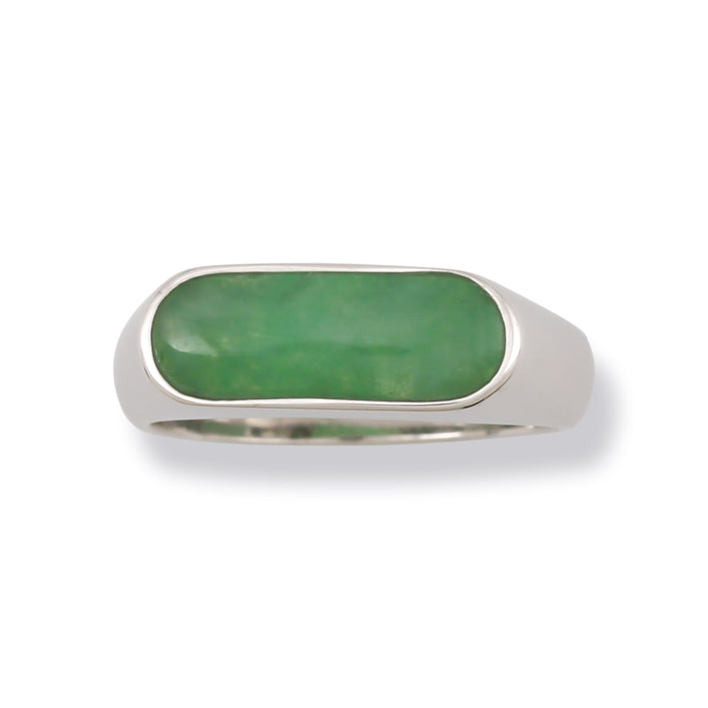 14K White Gold Green Jadeite Jade Saddle Ring for Women and Men | UPC #379114