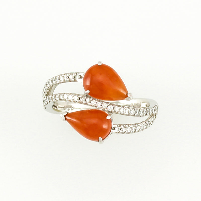 18K WHITE GOLD RED JADEITE JADE & DIAMOND RING UPC #286504