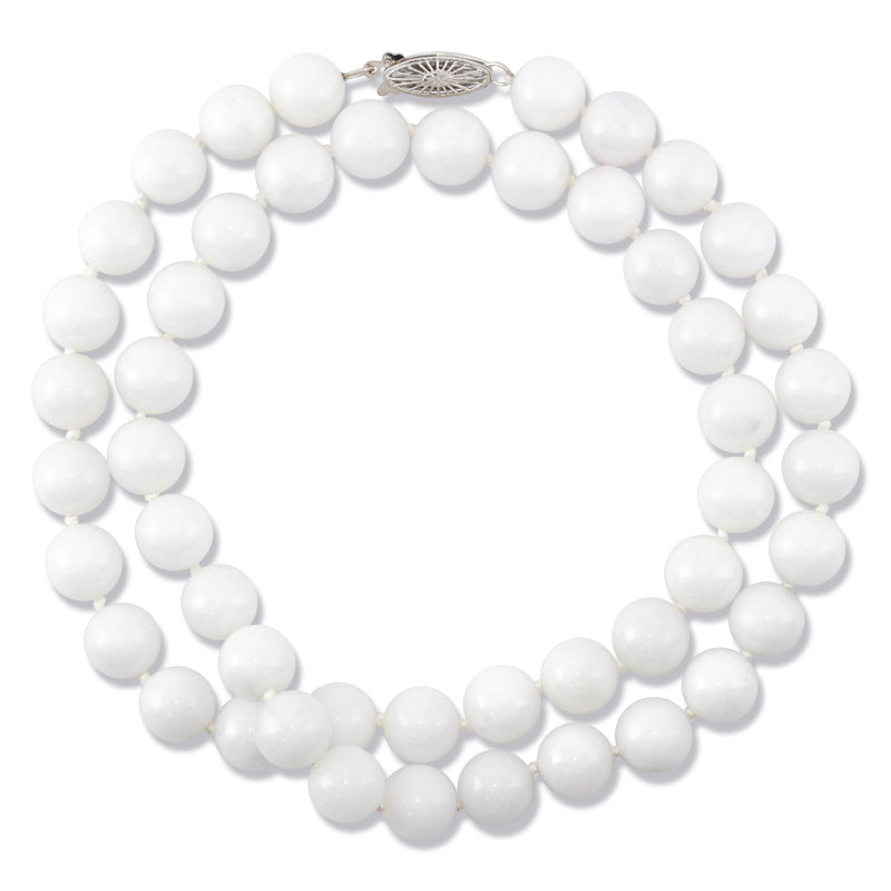 14K White Gold White Jadeite Jade Bead Necklace | UPC #371194