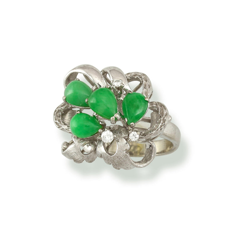18K WHITE GOLD GREEN JADEITE JADE AND DIAMOND RING UPC #342118