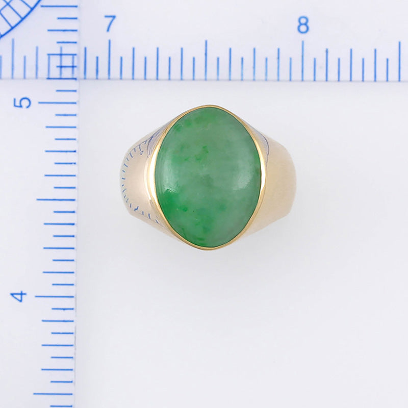 • 14K Yellow Gold Green Jadeite Jade Gypsy Style Ring for Men and Women | UPC #309661