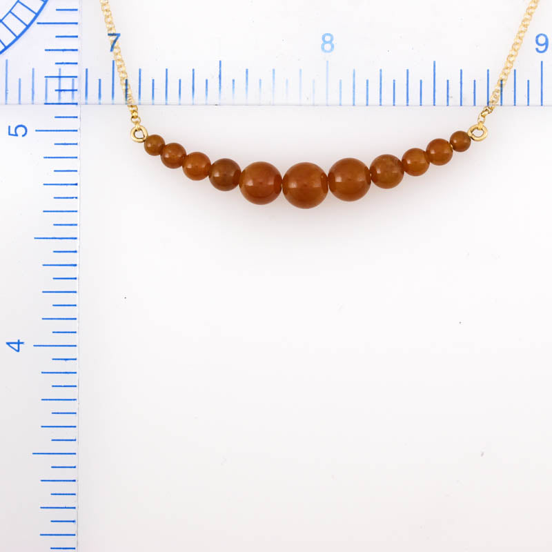This vivid red jadeite necklace has 11 graduated beads on a 14K yellow gold adjustable chain. In Chinese culture, red represents celebrations & prosperity. All Mason-Kay jadeite is natural, untreated type A Jadeite. Amazing Jade Gift!
