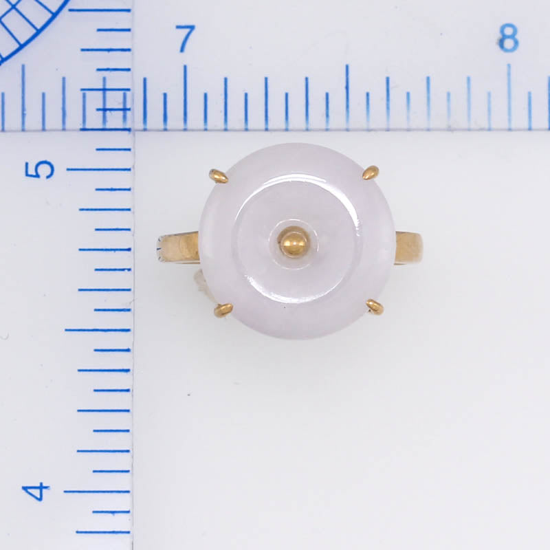 • 14K Yellow Gold White Jadeite Jade Disc Ring | UPC #373785