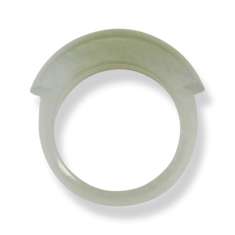 Give yourself the gift of jade with this unisex yellow jadeite jade saddle top solid band ring. At a finger size 8.5, this is the perfect piece for men and women alike. All Mason-Kay jade jewelry is natural, untreated A Jade.