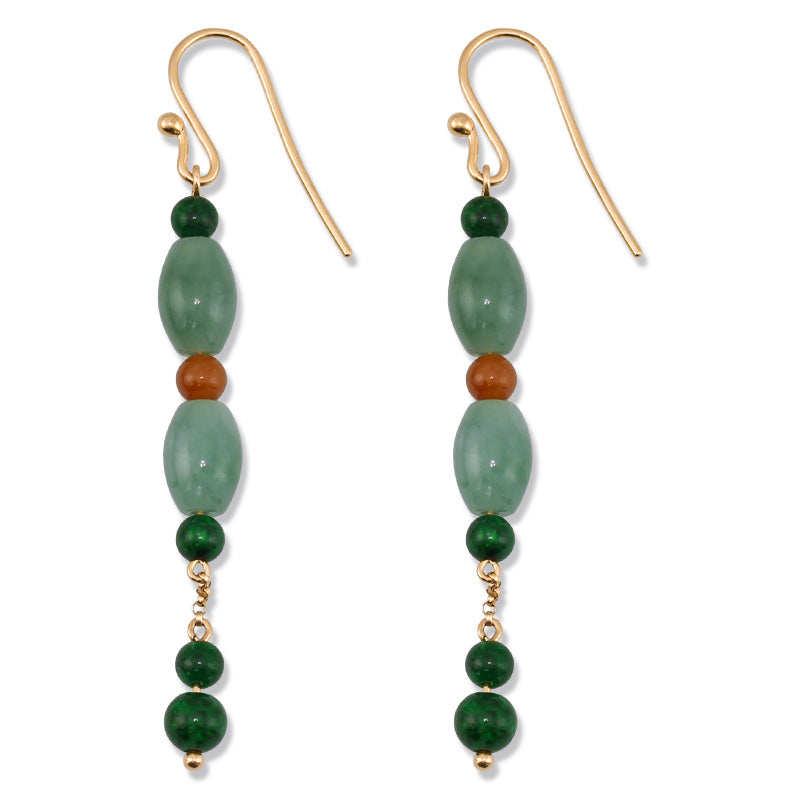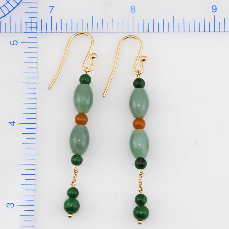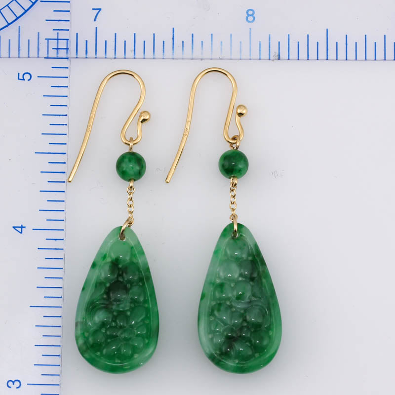 14K Yellow Gold Green Jadeite Jade Carved Bead Drop Earrings | UPC #388895