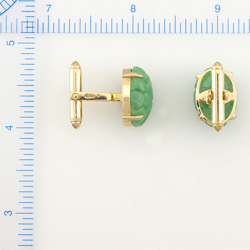 14K YELLOW GOLD CARVED GREEN JADEITE JADE CUFFLINKS UPC #324497