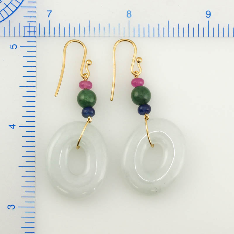 14K Yellow Gold Green Jadeite Jade Circle Earrings | UPC #388819