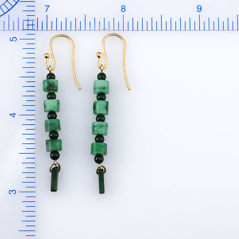 14K Yellow Gold Grey Jadeite Jade Drop Earrings | UPC #375567
