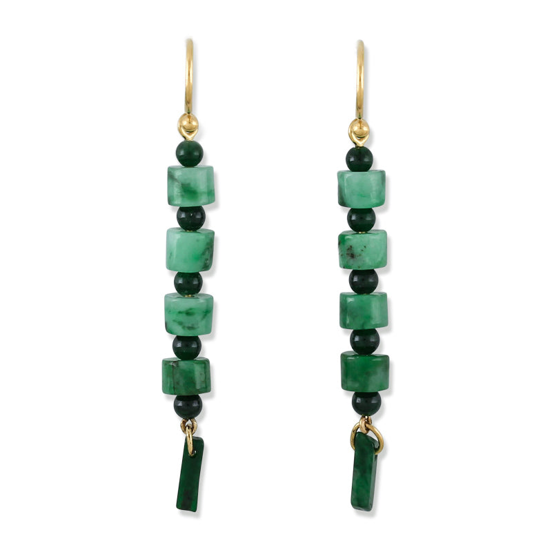 14K YELLOW GOLD ICE JADEITE JADE CARVED GEOMETRIC DROP EARRING UPC #388802