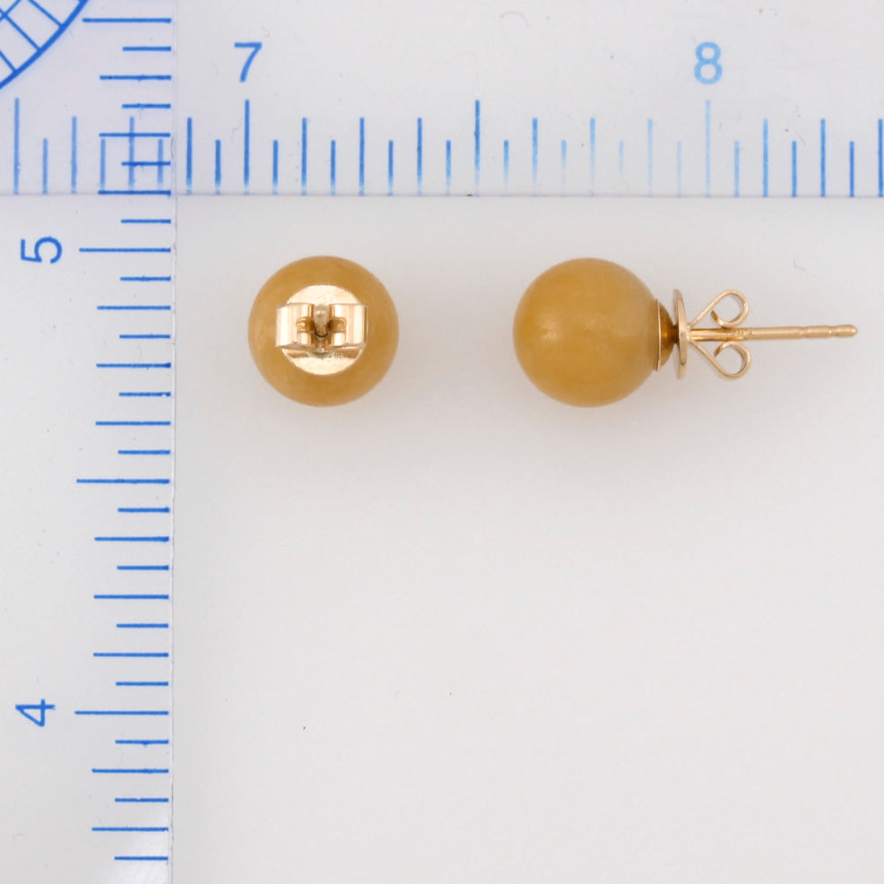 14K YELLOW GOLD YELLOW JADEITE JADE 8MM BALL STUD EARRING UPC #381070