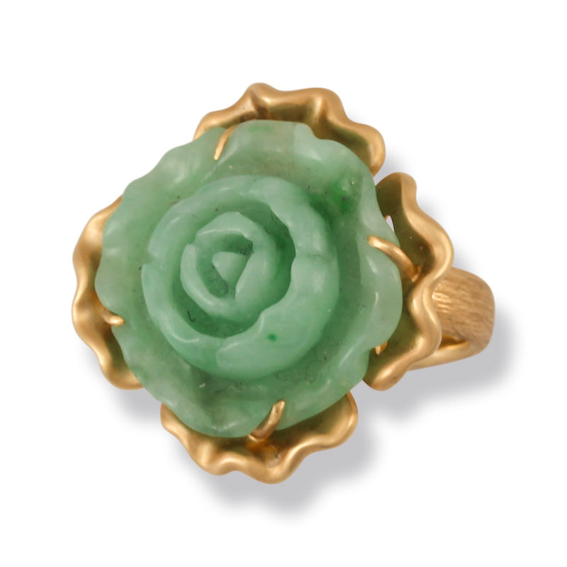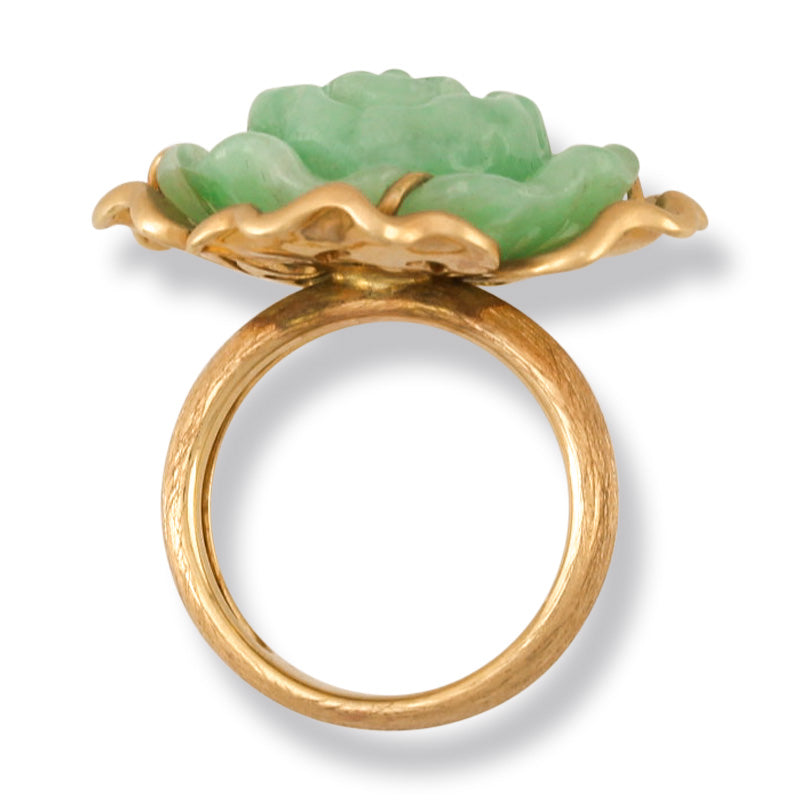 14K YELLOW GOLD GREEN JADEITE JADE CARVED FLOWER RING UPC #389953