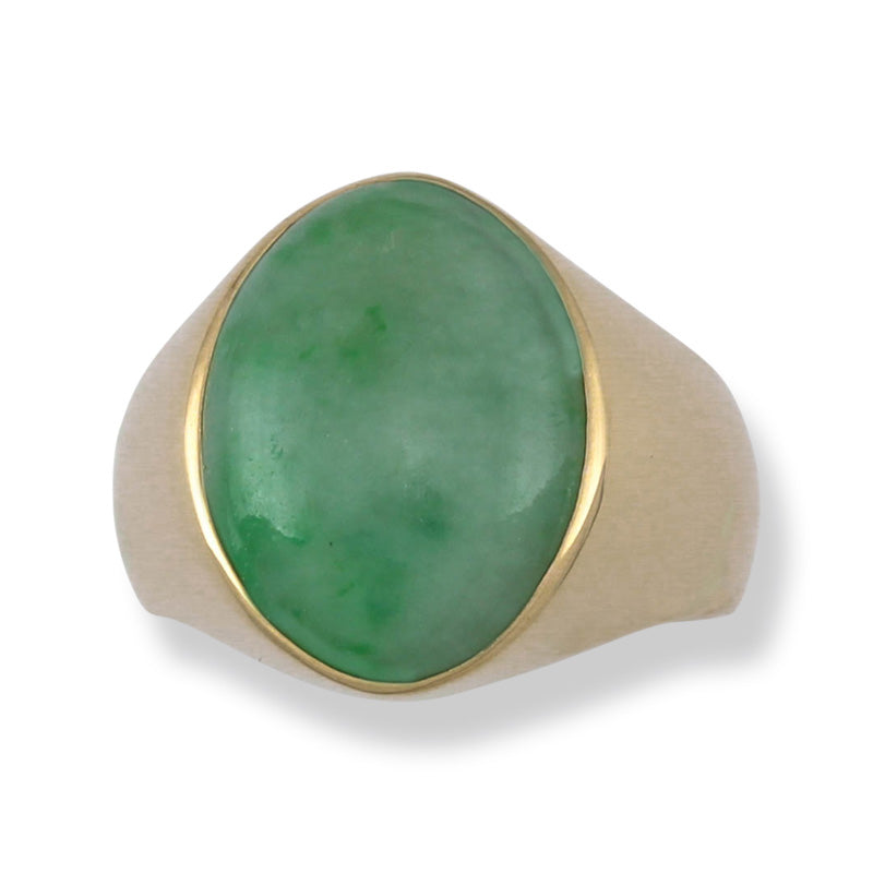 14K Yellow Gold Green Jadeite Jade Gypsy Style Ring for Men and Women | UPC #309661