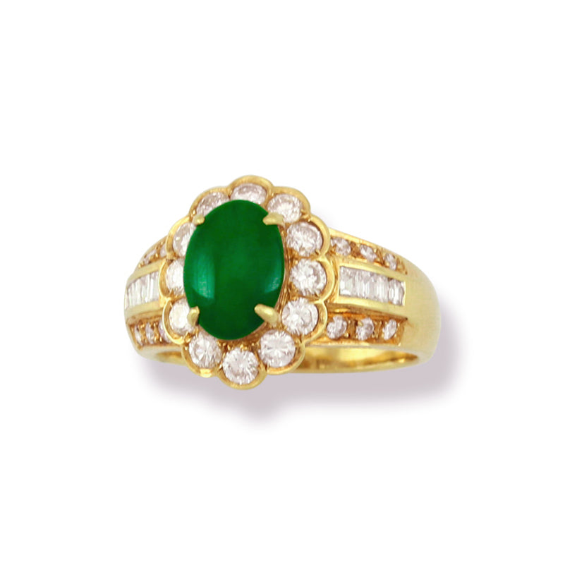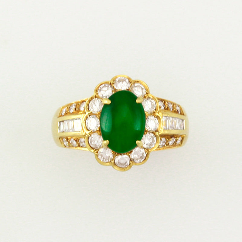 Estate Jewelry | Vintage Jadeite Jade and Diamond Ring in 18K Yellow Gold | UPC #353299