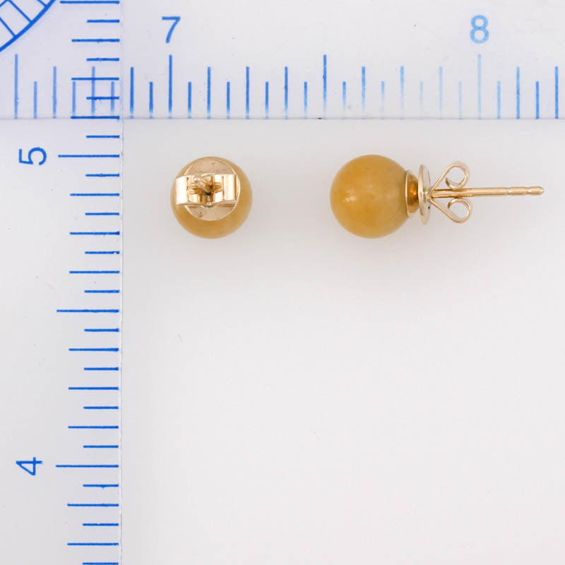 14K YELLOW GOLD YELLOW JADEITE JADE 6.8MM BALL STUD EARRING UPC #381100