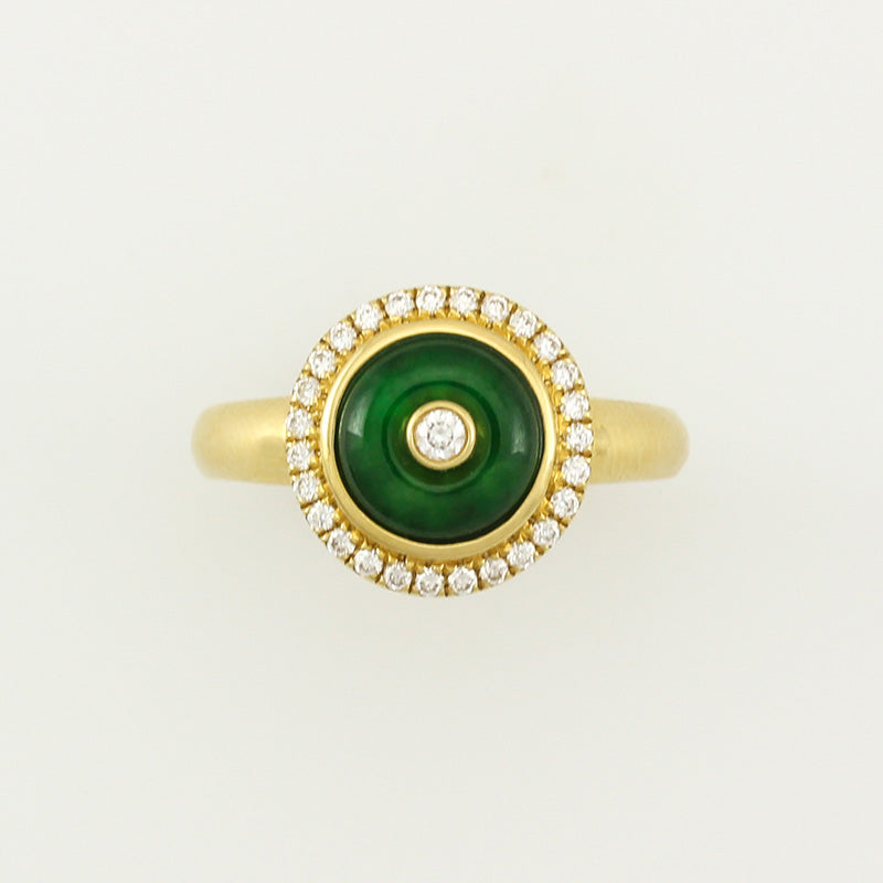 18K YELLOW GOLD GREEN JADEITE JADE AND DIAMOND DISC RING UPC #340008