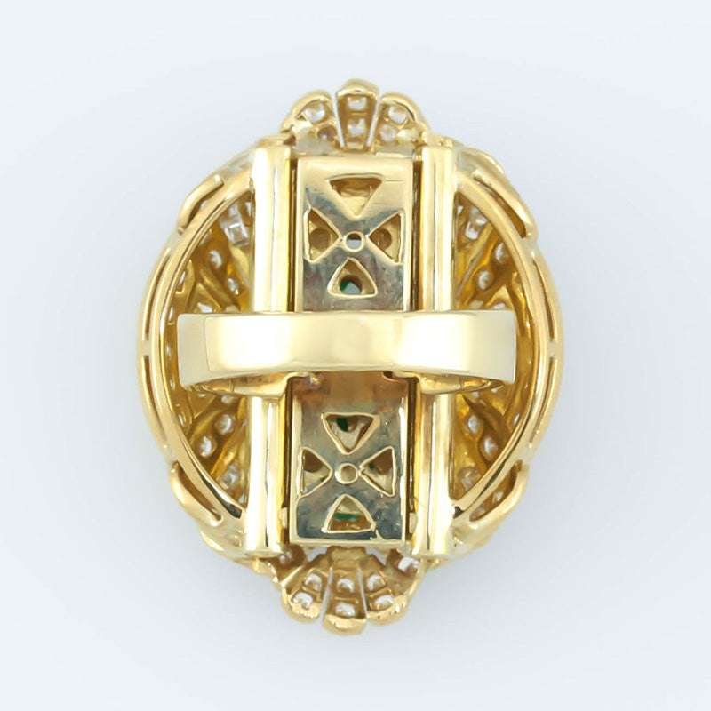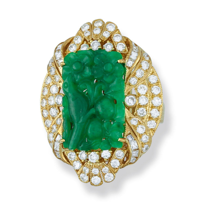 Estate 14K Yellow Gold Green Jadeite Jade Carved Ring with Diamonds | UPC #356856
