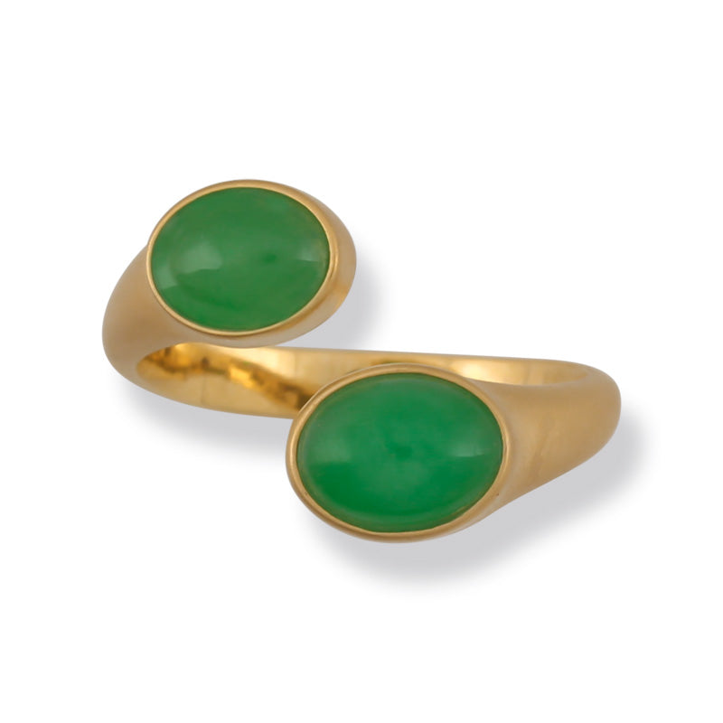 18K YELLOW GOLD GREEN JADEITE JADE BYPASS RING UPC #375949